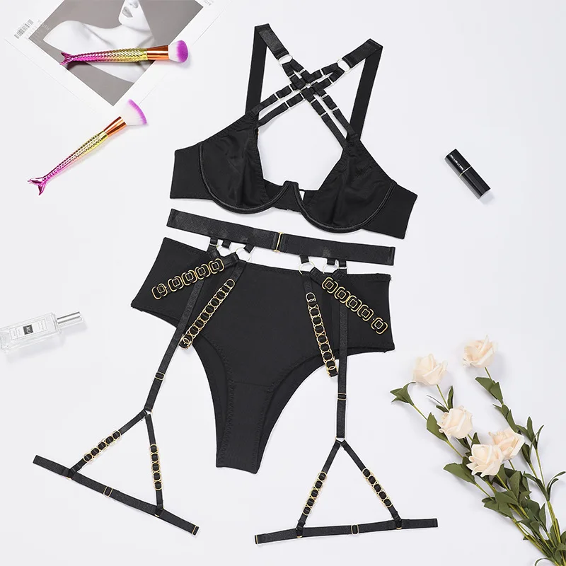 2025 New Arrival Women's Sexy Lingerie Set Hot Sales Mature Love Styles Metal Chain Underwear